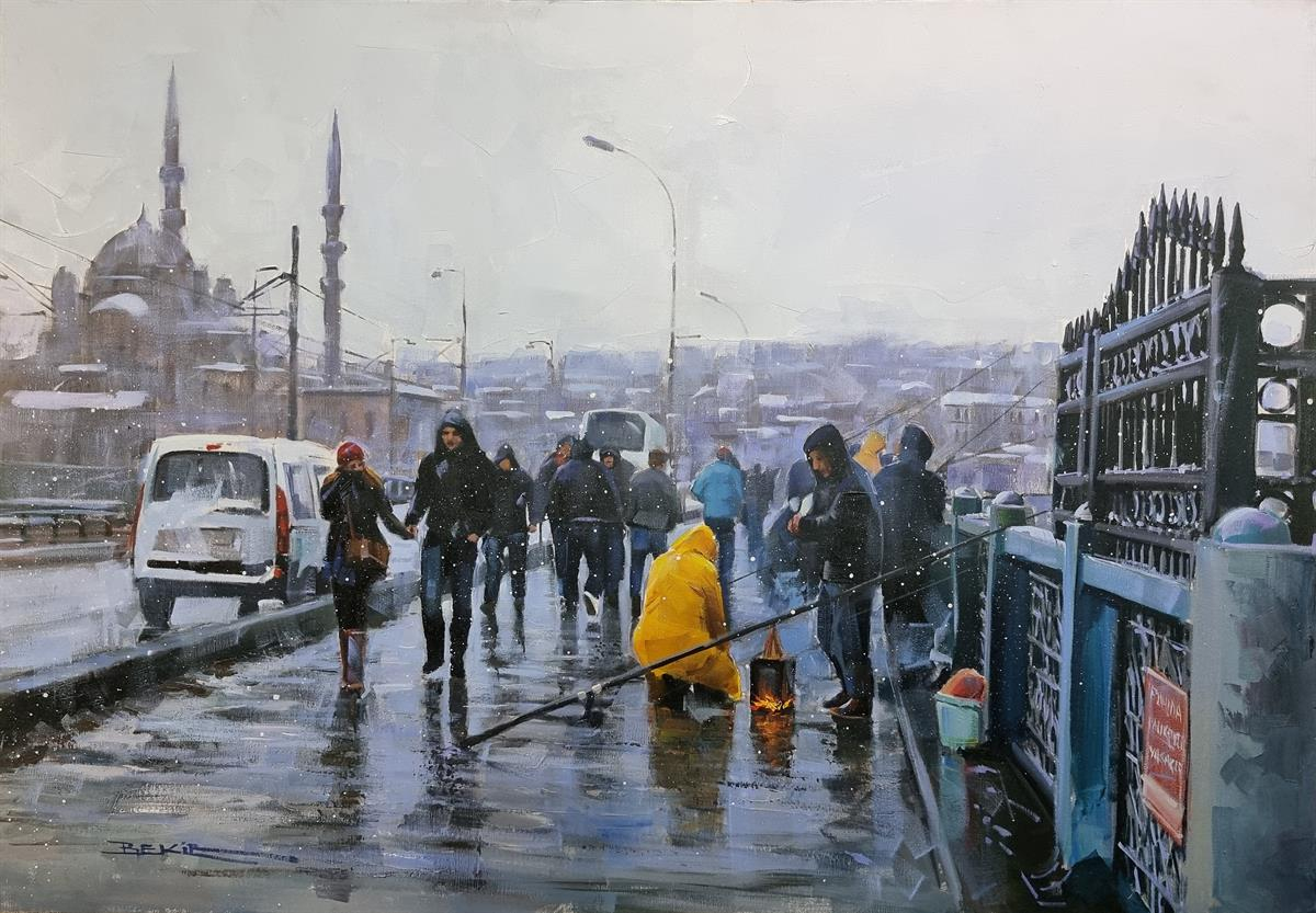 Bekir Üstün - Köprüde Balıkçılar (Tuval Üzerine Yağlı Boya)
