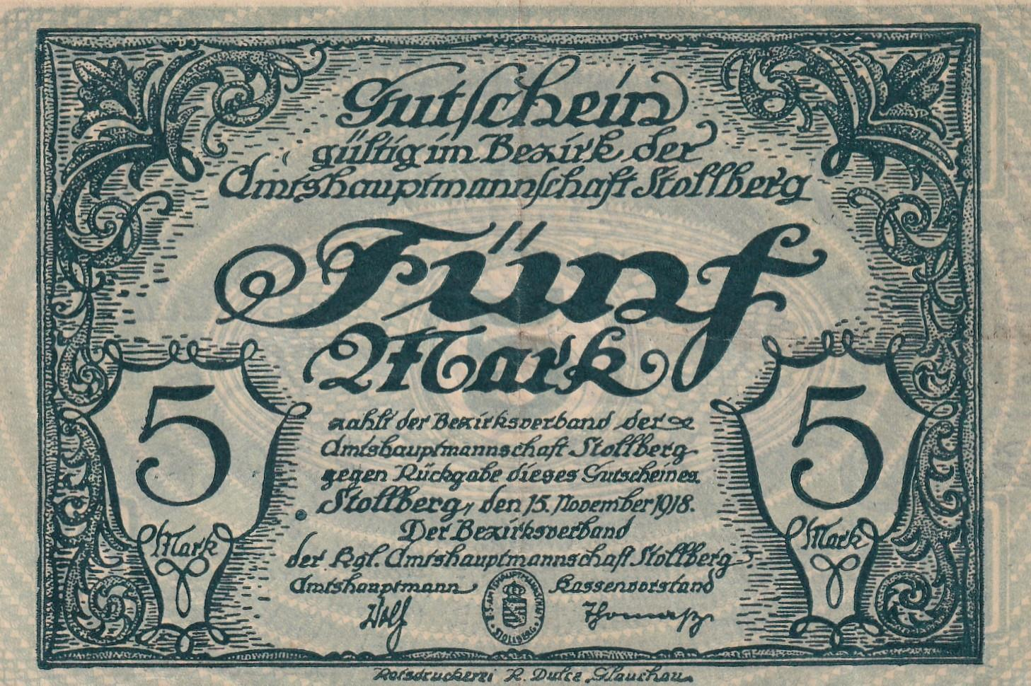 NotgeldAlmanya, Stollberg, 5 Mark (1918) ÇT/ÇÇT Notgeld