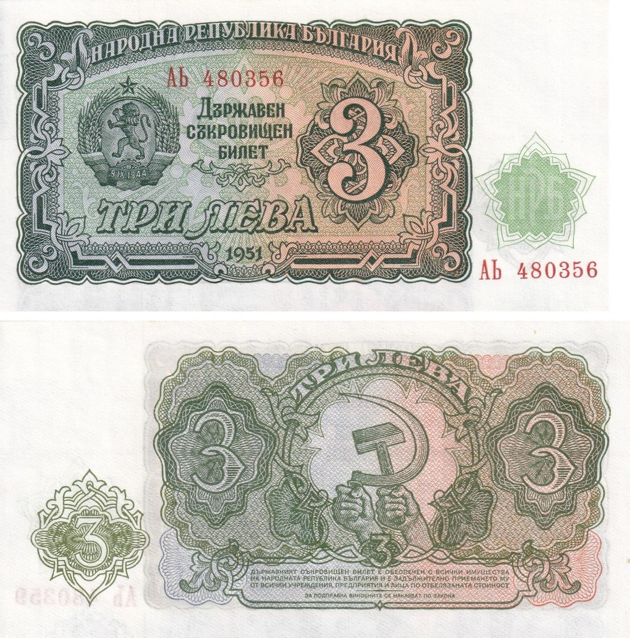 Bulgaristan, 3 Leva (1951) ÇİL Eski Yabancı Kağıt Para